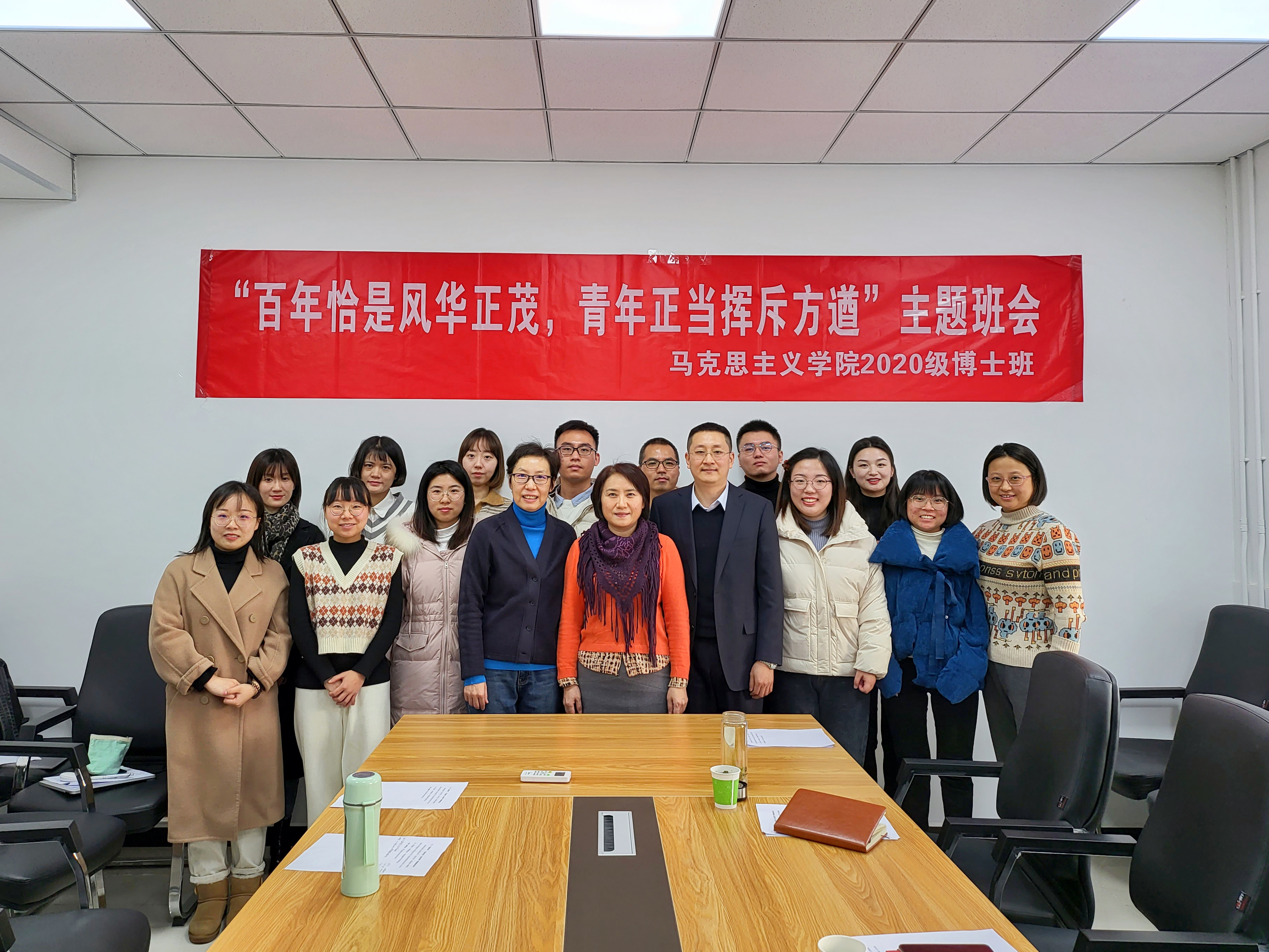 2021年12月14日上午,成人视频 2020级博士班开展主题为“百年恰是风华正茂,青年正当挥斥方遒”的班会。校党委常委、宣传部部长蓝晓霞出席班会。成人视频 党委书记孙冬梅、副书记副院长田永静、辅导员刘慧敏、班主任管前程、20博全体同学参加了班会。