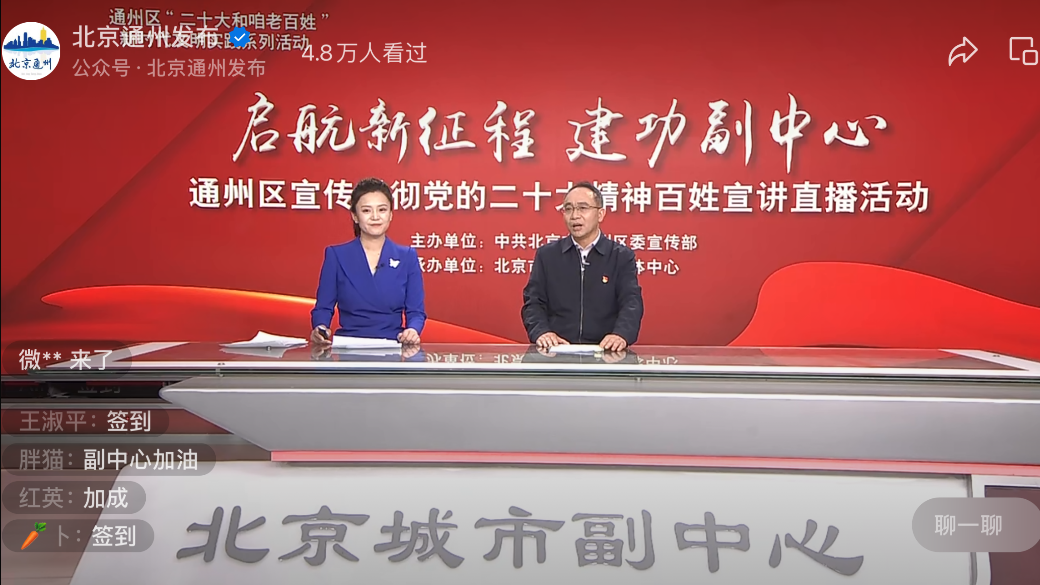 2023年2月24日晚上7点30分,成人视频 成人视频 高正礼院长作为特邀专家出席了通州区学习宣传贯彻党的二十大精神百姓宣讲直播活动,对践行党的创新理论的典型案例进行点评。这标志着成人视频 成人视频 与通州区合作步入新阶段,拓展了校地合作新模式,对“大思政课”的建设与实践也发挥了积极作用。