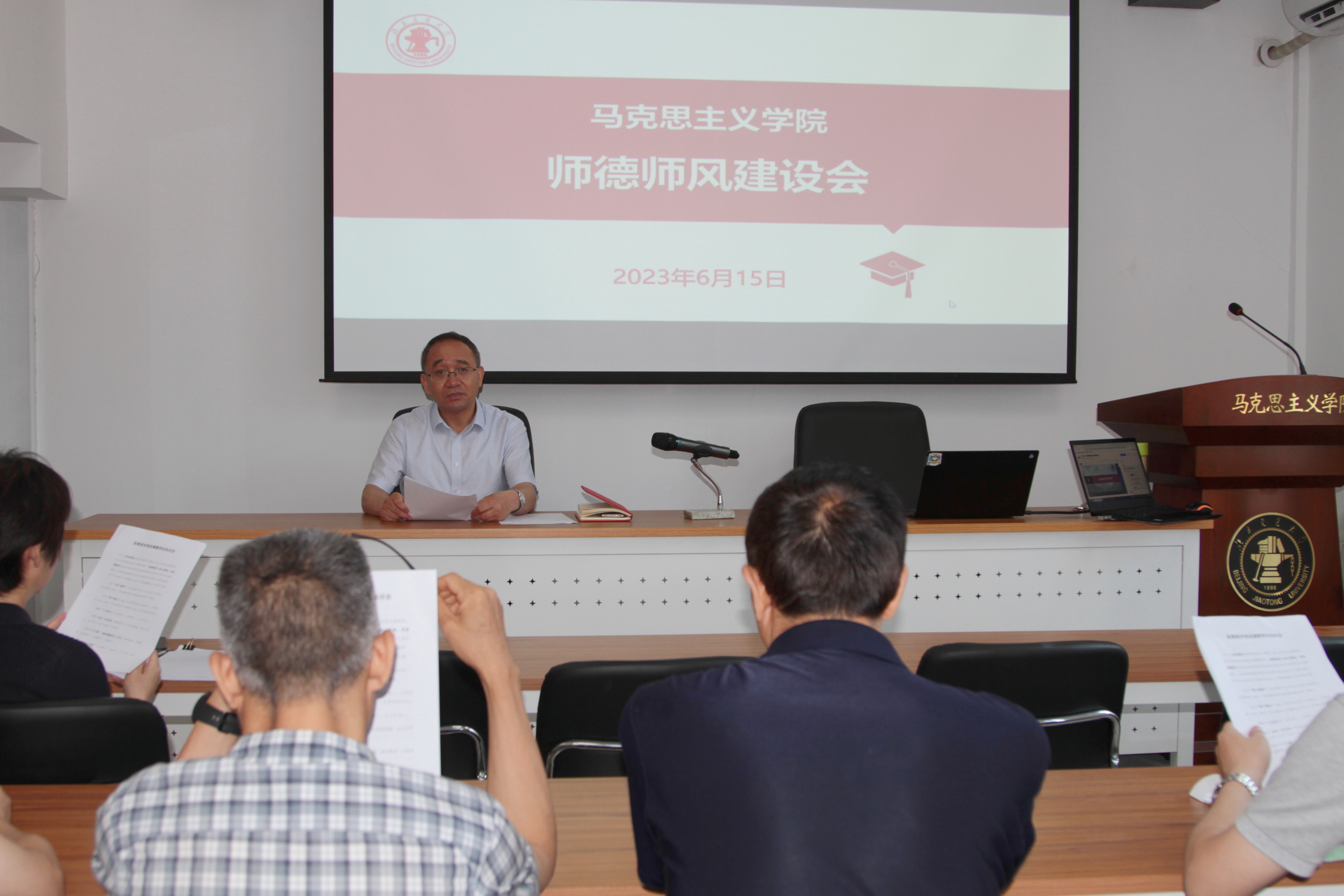 2023年6月16日上午9:00成人视频 在向阳办公室2111召开师德师风建设会,学院全体教职工出席此次会议,会议由学院党委书记孙冬梅主持。