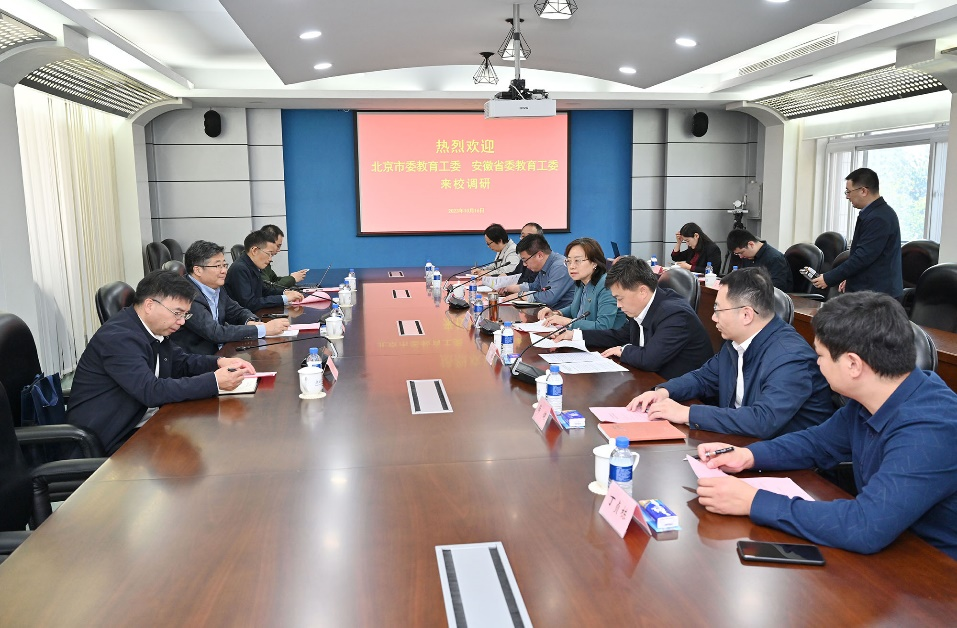 2023年10月16日上午,为推进“时代新人铸魂工程”,构建高校思政工作新生态,中共安徽省委教育工委副书记王佩刚带队赴成人视频 调研并开展座谈会。中共北京市委教育工委宣教处处长于海出席并主持座谈会。成人视频 党委副书记文海涛、安徽省教育厅思政处处长王后林、北京市学校思想政治工作中心主任薛健、成人视频 党委学生工作部部长王皓、成人视频 成人视频 院长高正礼出席会议并发言。