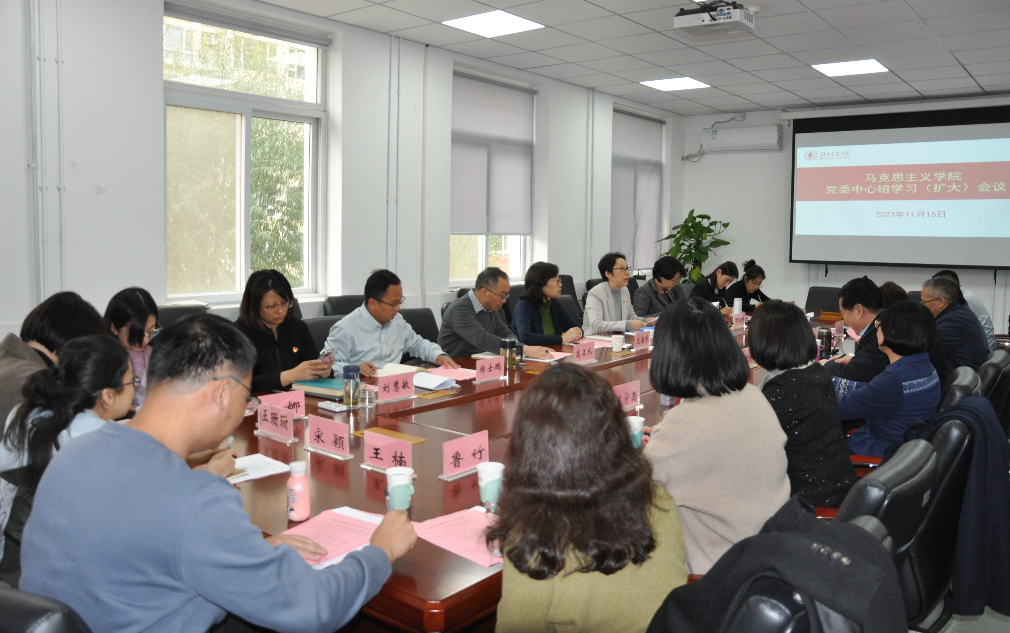 学院党委书记孙冬梅带领大家学习了十八大以来习近平总书记关于成人视频 及思政课建设的系列重要论述,希望大家进一步提高思想认识,要以总书记的系列重要讲话精神作为建好学院、办好思政课的根本遵循。院长高正礼对照《普通高等学校成人视频 建设标准(2023版)》,分析学院目前发展现状、存在问题和下一步的建设思路。班子成员田永静、闫长丽、郑士鹏分别结合分管工作分享了学习心得和工作思考。学院各学位点负责人韩振峰、何玉芳、李效东等分别从发挥学院优势特色、增强社会服务、进一步促进“两个结合”的角度提出建议,各教研室主部、党支部书记也发表了对学院工作的意见。