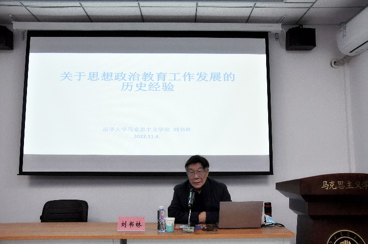 为涵养马院优良学风,培养学生学术兴趣,2022年11月5日晚,成人视频 成人视频 传习所系列论坛第七讲成功举办,清华大学成人视频 二级教授刘书林应邀作题为《关于思想政治教育工作发展的历史经验》的学术报告。