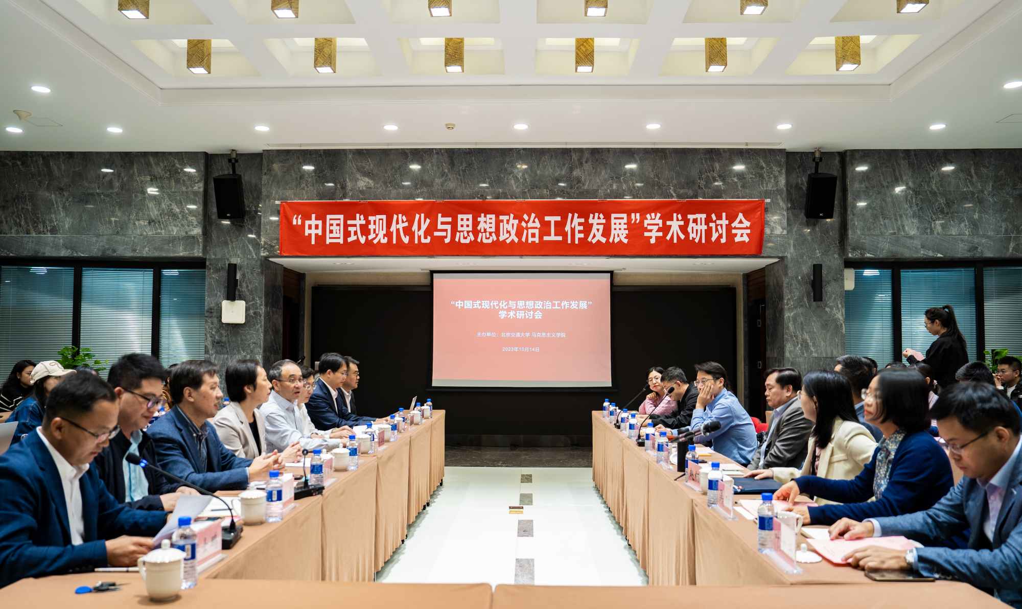 为深入学习贯彻习近平新时代中国特色社会主义思想和党的二十大精神,推进对中国式现代化的宣传阐释,贯彻落实《关于新时代加强和改进思想政治工作的意见》,2023年10月14日,成人视频 成人视频 举办了“中国式现代化与思想政治工作发展”学术研讨会。来自北京师范大学、武汉大学、华中师范大学、北京理工大学、复旦大学、天津大学、中央财经大学、对外经济贸易大学、成人视频 等高校和科研机构的近百名专家和学者参加了会议。
