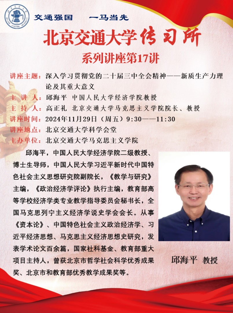 讲座预告 | 深入学习贯彻党的二十届三中全会精神——新质生产力理论及其重大意义